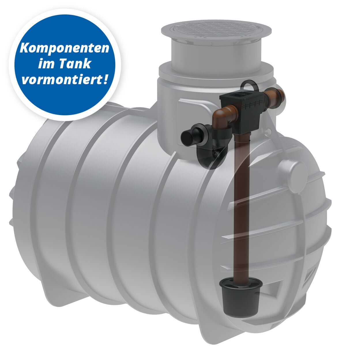 - Tankeinbaufilter inkl. Überlaufsiphon (vormontiert) - Zulaufberuhiger (vormontiert)