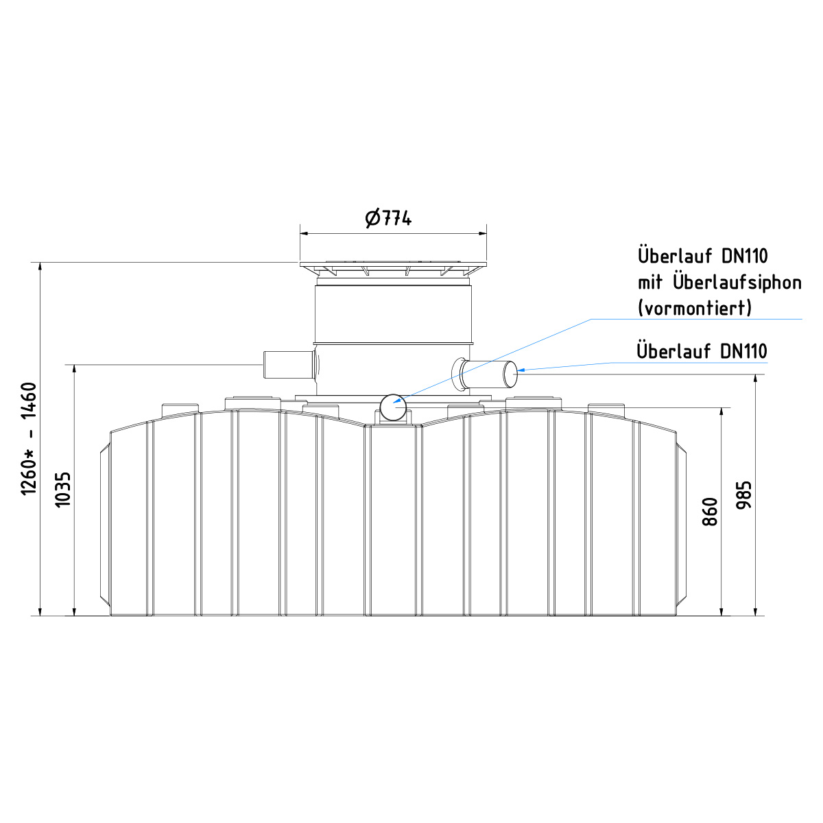 - Inkl. höhenverstellbare Tankabdeckung – begehbar und kindersicher
