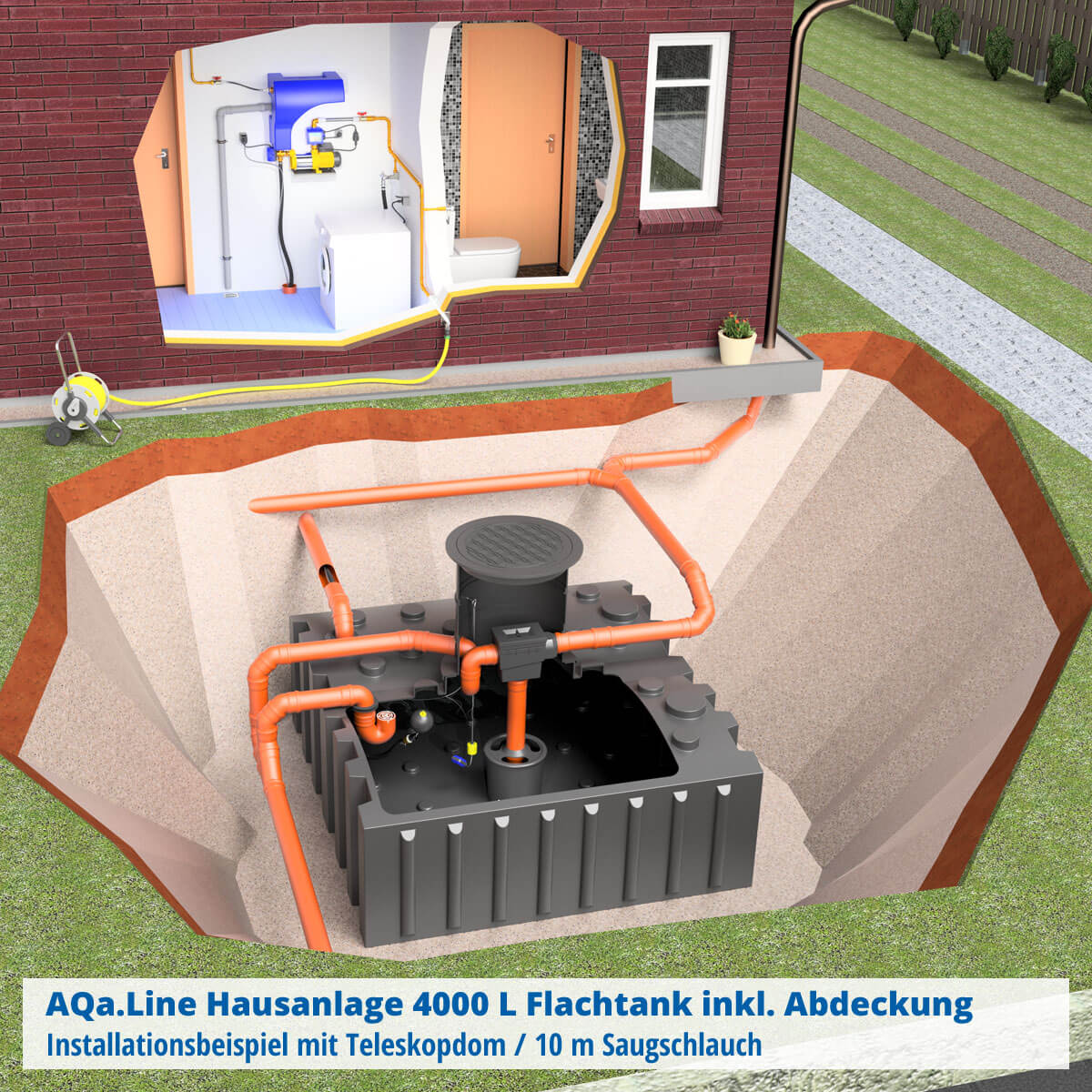 AQa.Line Hausanlage 4000 L Flachtank inkl. Abdeckung
