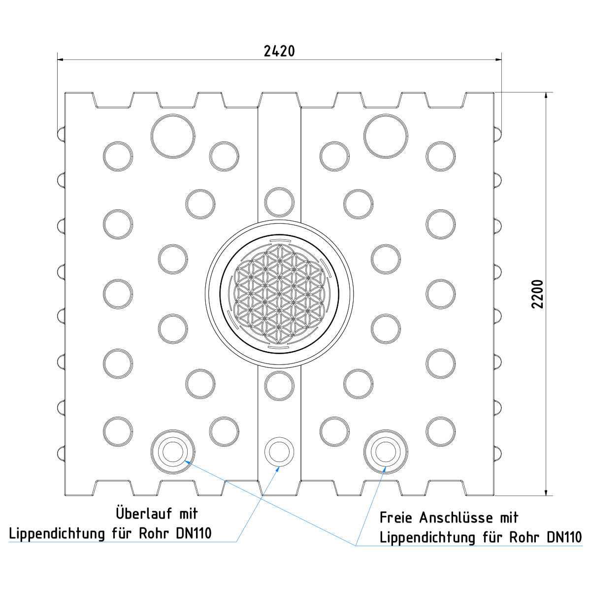 - AQa.Line Flachtank 5000 L (inkl. vormontierter Anschlüsse DN110)