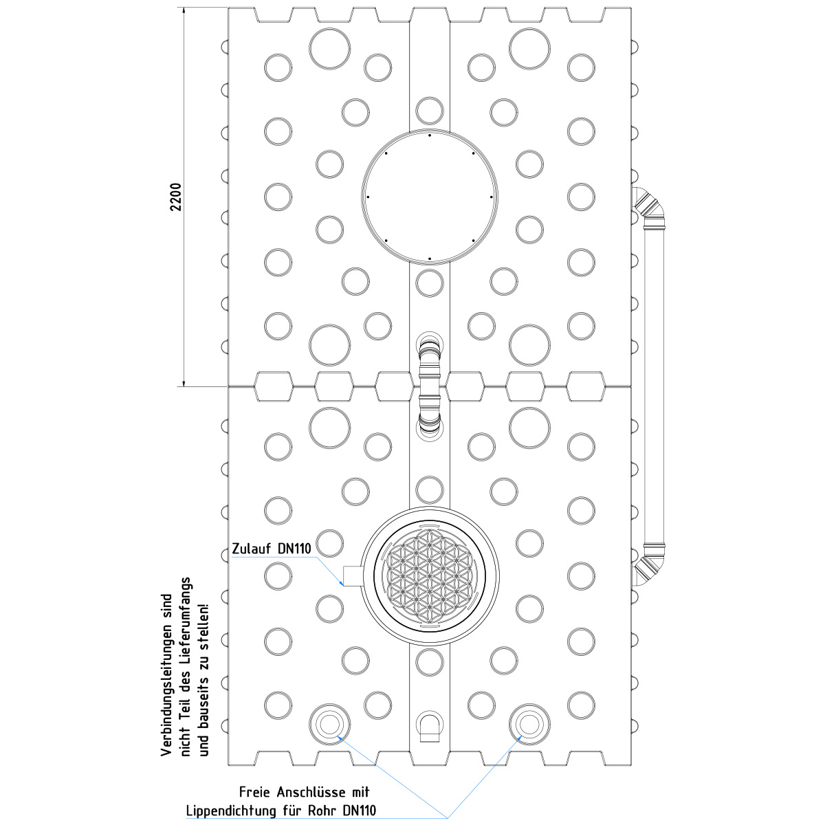 - AQa.Line Flachtank 10.000 L (inkl. vormontierter Anschlüsse DN110) (KG-Verbindungsrohre/-bögen sind bauseits zu stellen!)