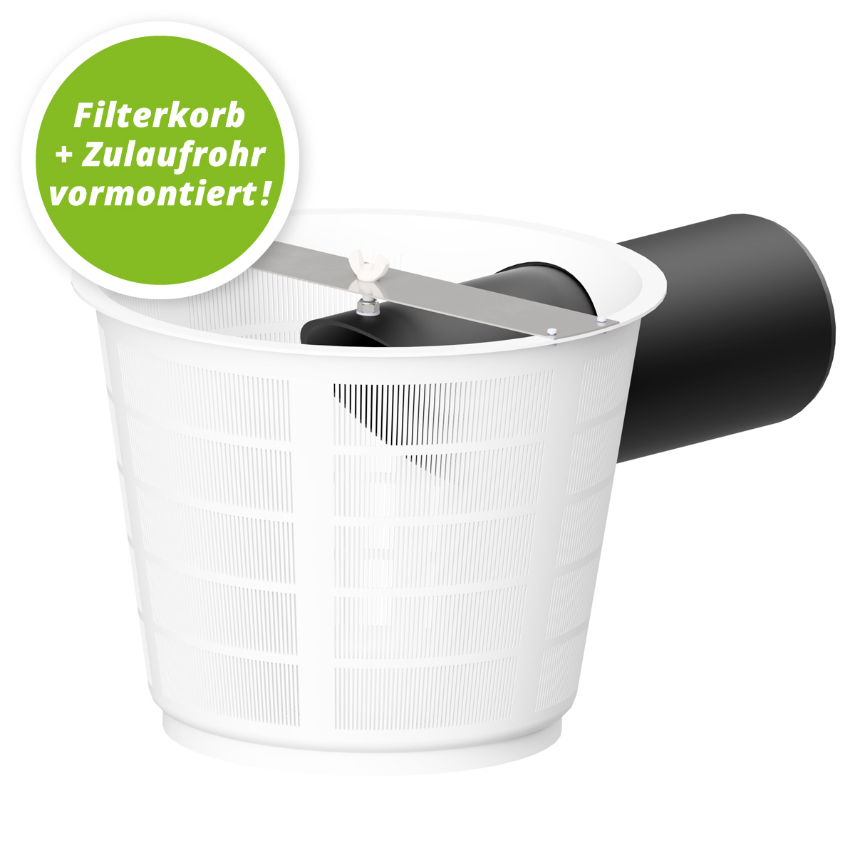- Filterkorb (Maschenweite: 0,9 mm) für die Regenwassernutzung im Garten (vormontiert)