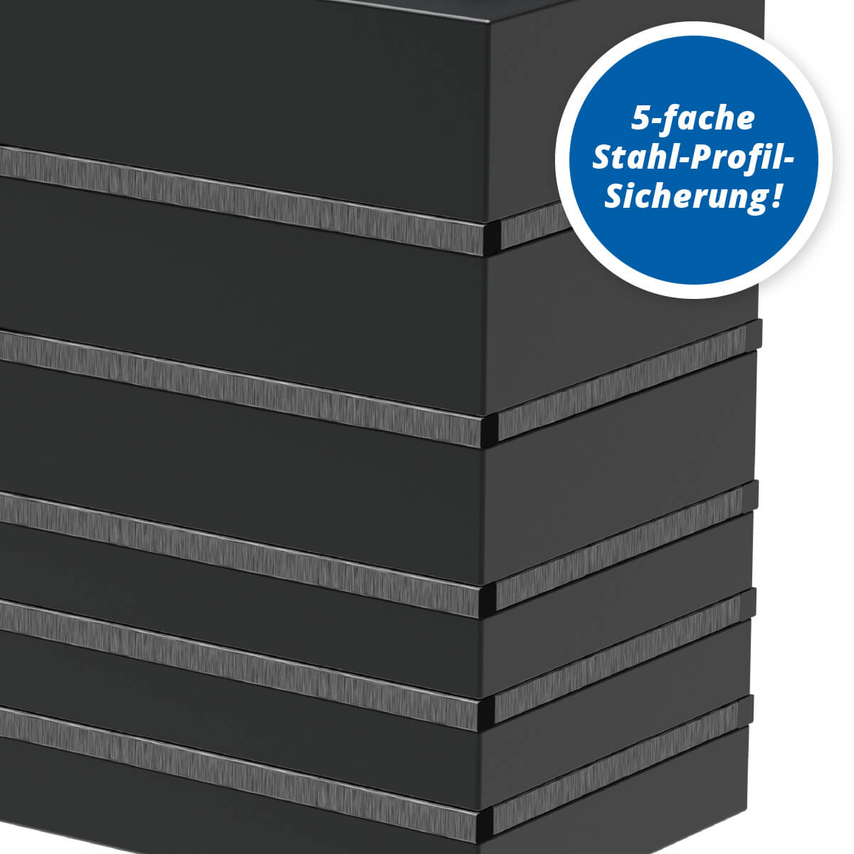 - Mit 5-facher Stahl-Profil-Sicherung – bestens geeignet für die oberirdische Aufstellung