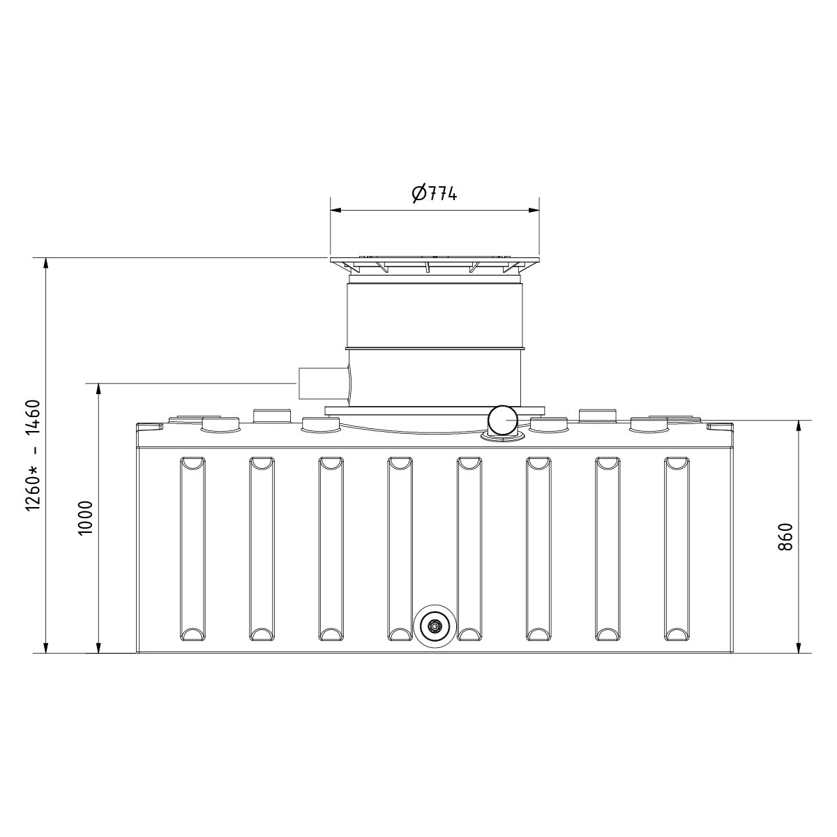 - Enthaltene Tankabdeckung ist höhenverstellbar, begehbar und kindersicher