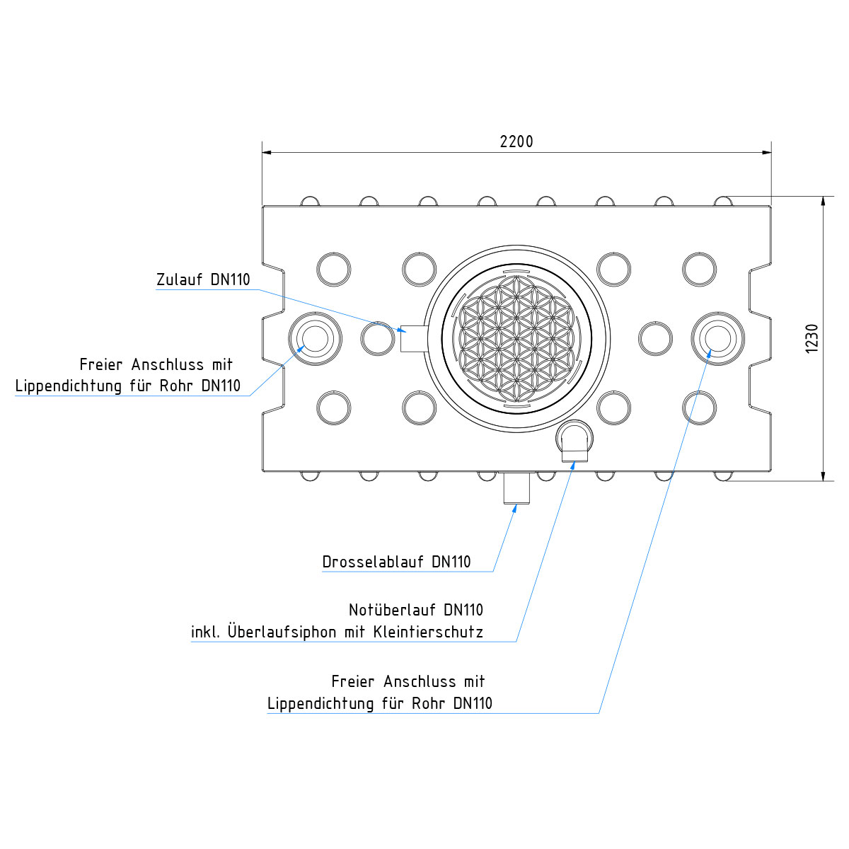 - Überlaufsiphon mit Kleintierschutz (vormontiert)