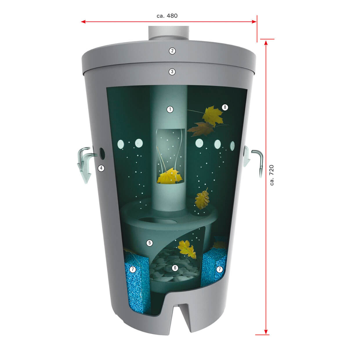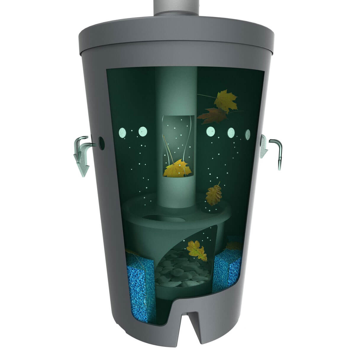 - rein biologische Wirkprinzipien zum Abbau aller organischen Bestandteile im Regenwasser. Nichtorganische Bestandteile setzen sich ab.