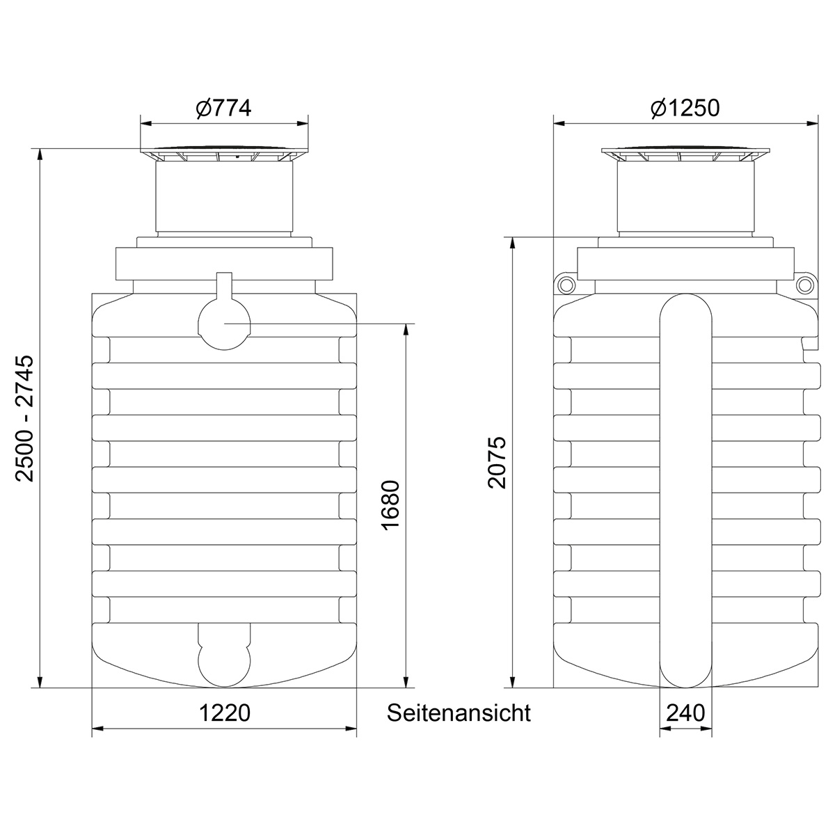 | 2000 L | 250-274 cm | 125 cm | 120 kg |