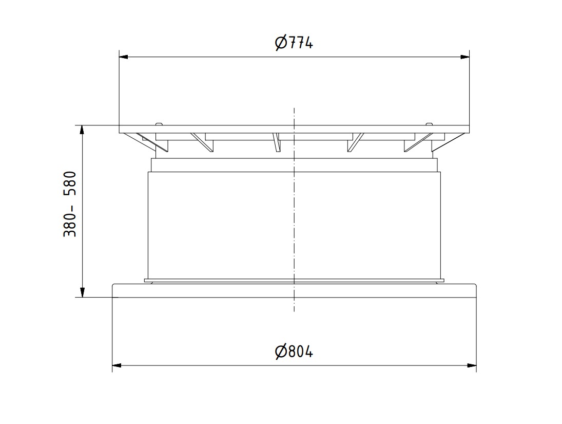 - Masse H x B: 380-580 mm x Ø 774 mm