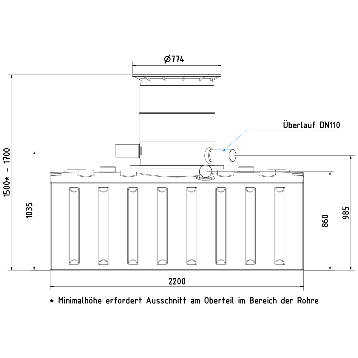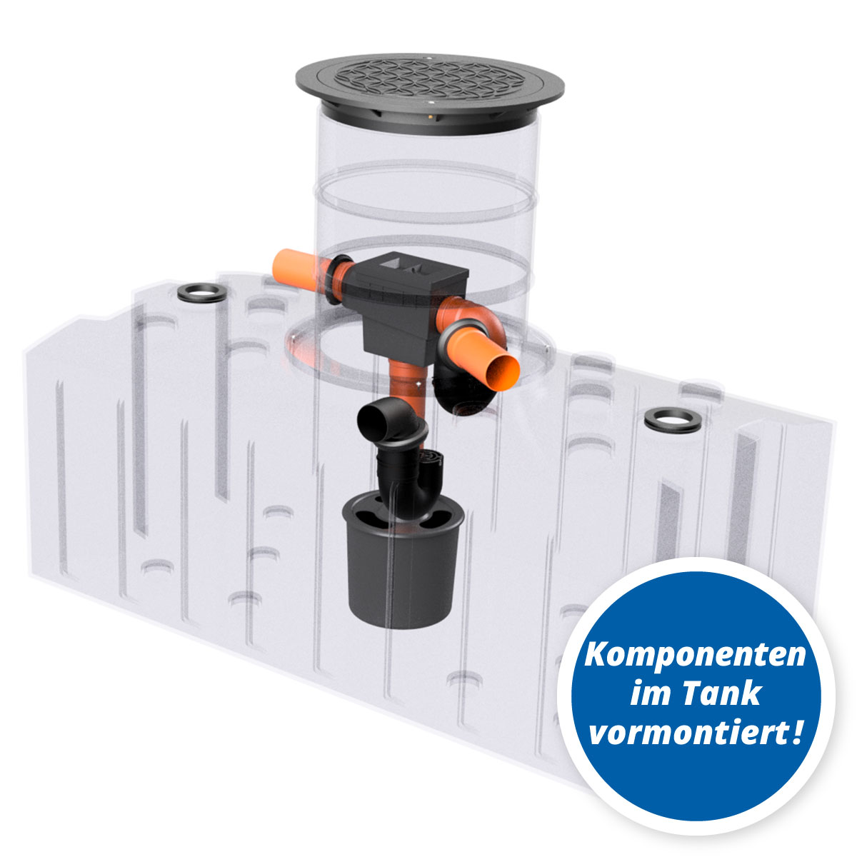 - Anschlussfertige Zisterne inkl. höhenverstellbarer Abdeckung und optional wählbarer Komponenten