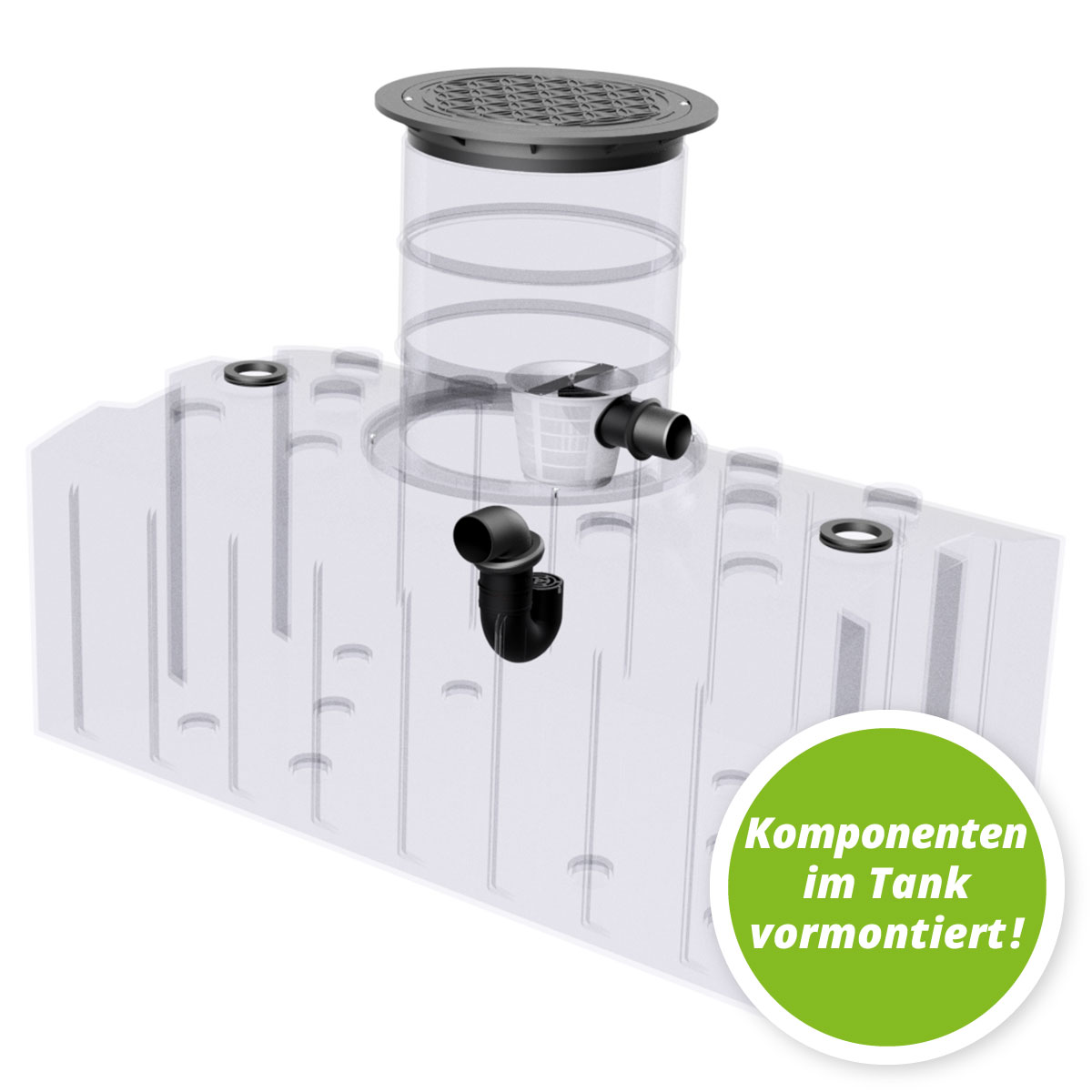 - Anschlussfertige Zisterne inkl. höhenverstellbarer Abdeckung und optional wählbarer Komponenten