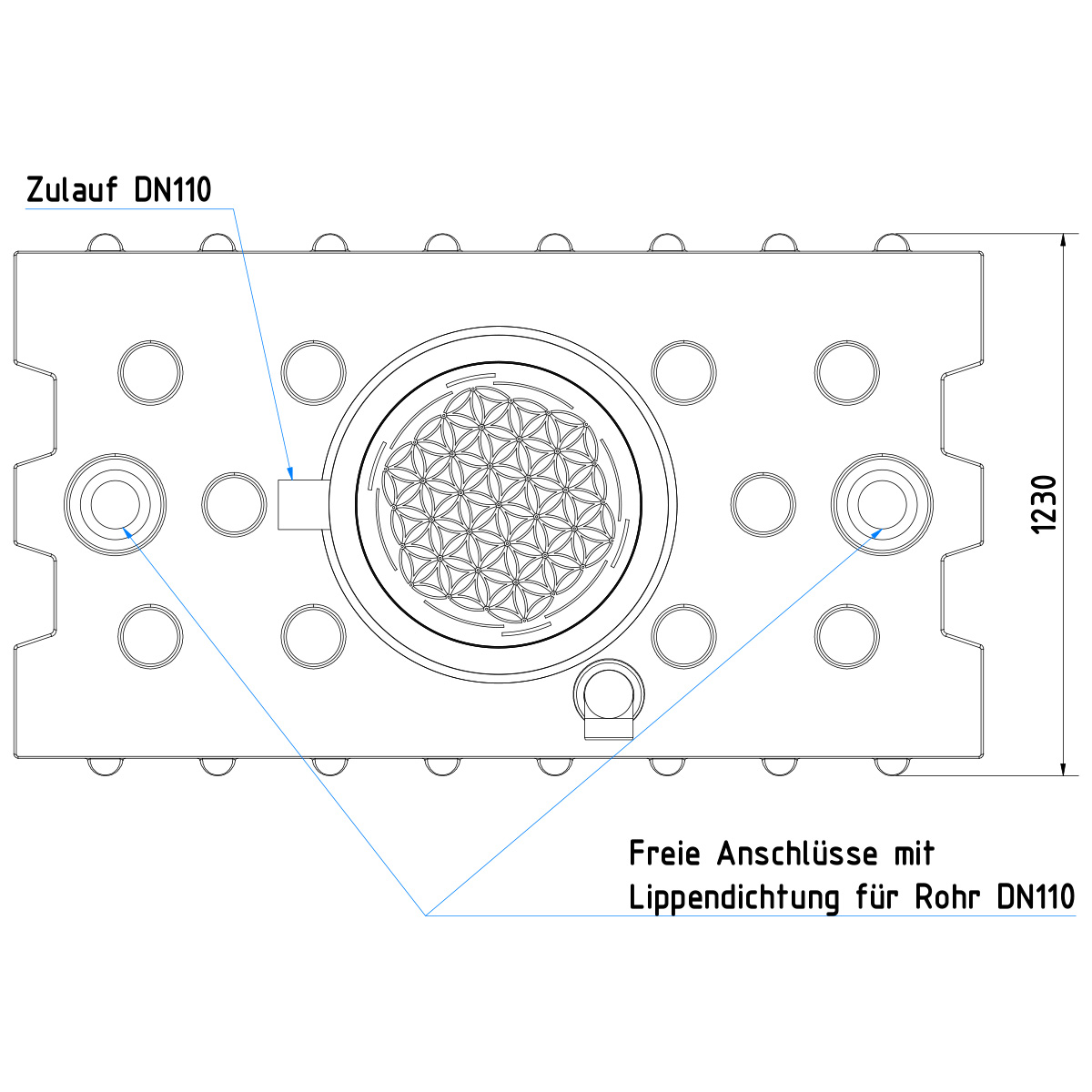 - AQa.Line Flachtank 2000 L (inkl. vormontierter Anschlüsse DN110)
