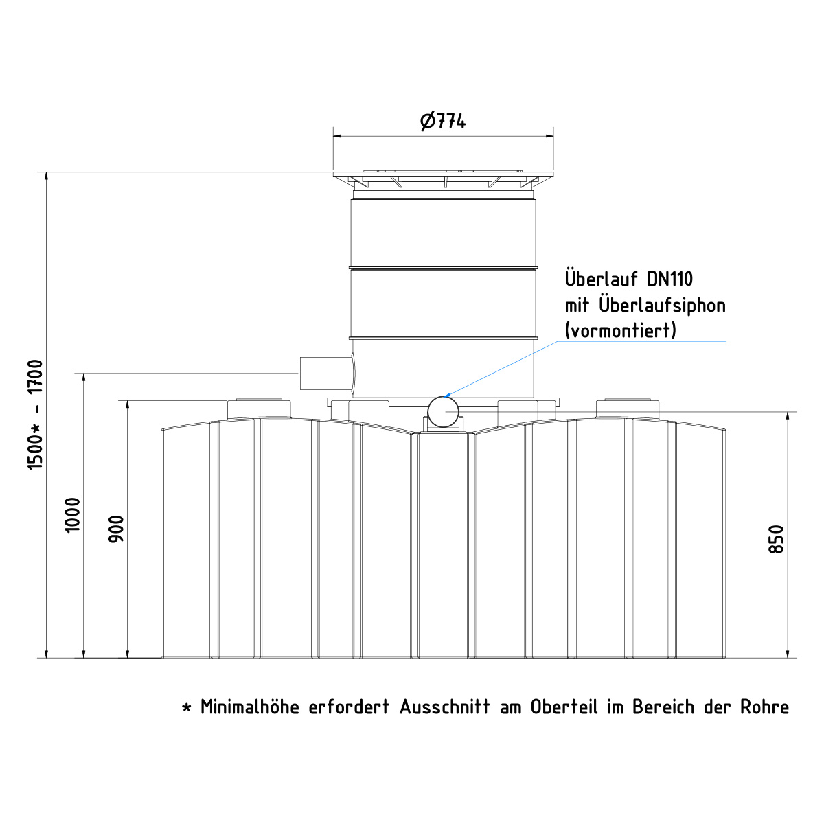 - Anschlussfertige Zisterne inkl. höhenverstellbarer Abdeckung und optional wählbarer Komponenten